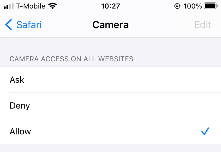 * El equipo tiene bloqueado por defecto el uso de la cámara o micrófono. En este caso se debe **acceder a la configuración y permitir de forma manual el acceso** a cámara o micrófono (Es más probable que ocurra esto en equipos con iOS)